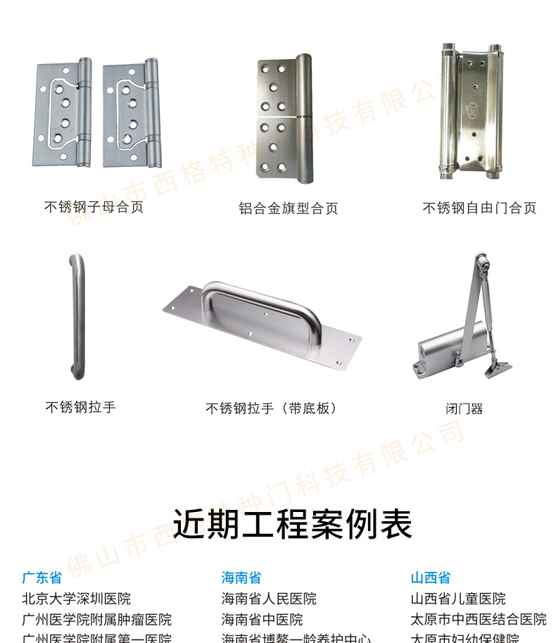 產(chǎn)品簡介:西格,多年來專注醫(yī)院門的生產(chǎn)與研發(fā),各種類、顏色的醫(yī)院門均可定制,歡迎咨詢。 產(chǎn)品價格:面議 咨詢熱線:400-6768-789