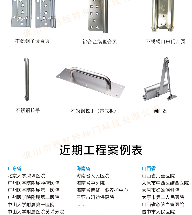 產(chǎn)品簡介:西格,多年來專注醫(yī)院門的生產(chǎn)與研發(fā),各種類、顏色的醫(yī)院門均可定制,歡迎咨詢。 產(chǎn)品價(jià)格:面議 咨詢熱線:400-6768-789
